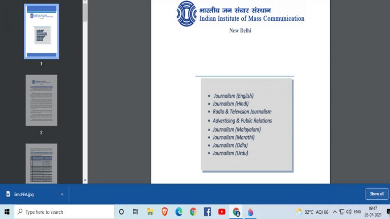 IIMC 2021 admission has begun and students willing to study post graduate diploma in journalism can apply till 9 August....