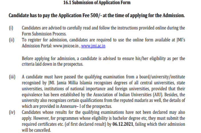 Candidates must complete all the formalities regarding admission by 6 December. The applications submitted to CDOE of JMI after the last date for submission.