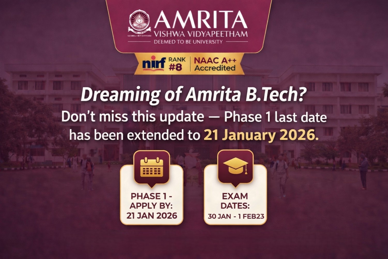 Amrita BTech Admission 2026: AEEE Phase 1 Extended