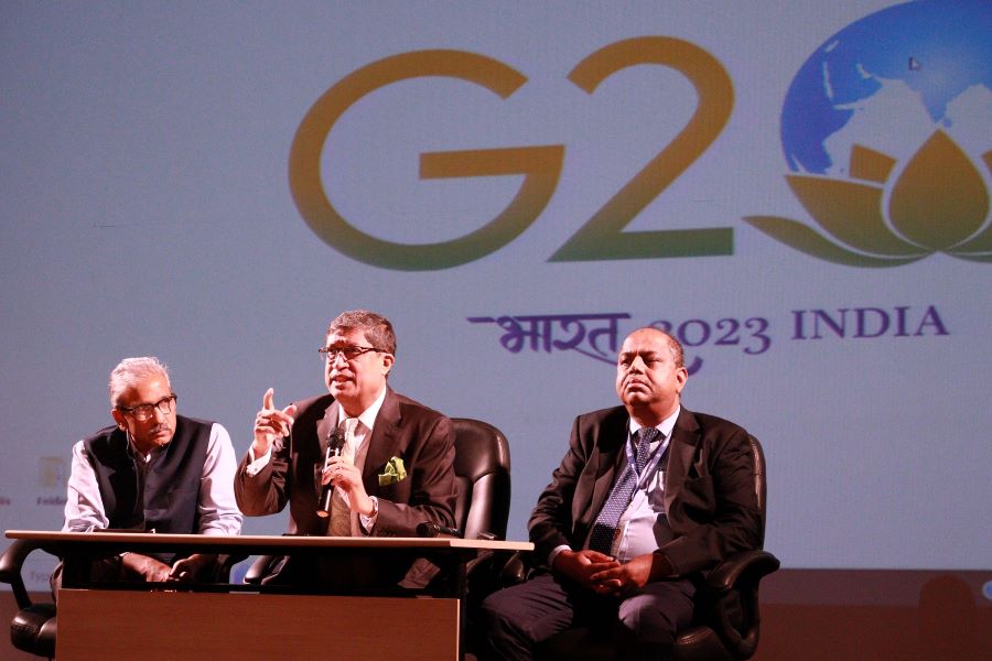 The University Connect Session began with the premier of the official G20 video announcing the Indian Presidency which talked about the honour and privilege that this opportunity has been for our nation and brought light to this year’s theme of “Vasudhaiva Kutumbakam” (One Earth, One Family, One Future).